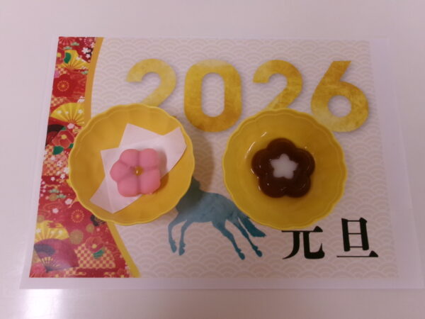 施設には手作りのしめ飾りや、お飾りを添え、お正月用のポスターを掲示して、例年以上に晴れやかな雰囲気の中、利用者様の笑顔があふれるひとときとなりました。