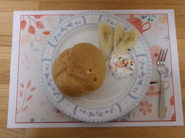 「バナナが食べたい!!」の“ひとこと”から始まった・・。“希望の森特製おやつプレート”への大変身・・・。